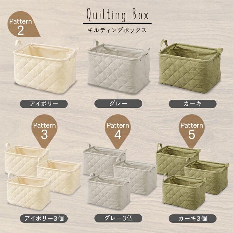 【ワイヤーバスケット WIB-38】【3個セット】●商品サイズ(cm)幅約38×奥行約26×高さ約25●耐荷重約6kg●材質布:ポリエステル58%、綿28%、レーヨン14%ワイヤー:鉄(エポキシ樹脂塗装)●種類(ロゴ)UNO、DOS、TRES●セット内容各ロゴ1個ずつ【キルティングボックス KRB-38】【3個セット】●商品サイズ(cm)幅約38×奥行約26×高さ約25●耐荷重約6kg●材質表地:ポリエステル59%、綿35%、レーヨン5%、ナイロン1%裏地:ポリエステル100%中綿:ポリプロピレン100%ワイヤー:スチール(亜鉛メッキ)●カラーアイボリー、グレー、カーキ●セット内容・各色1個ずつのセット(3色)・同色3個セット※ 他社のカラーボックスではサイズが合わない場合がありますのでご注意ください。