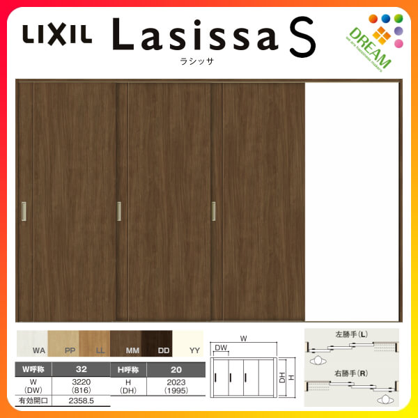 DIYに関する情報 必要技能:大工さん、建具屋さん 必要工具:電動ドリル、電動ドライバー、他 【商品説明】 【納まり図】 LIXIL/リクシルの室内建具 インテリアリビング建材 ラシッサ S ラシッサS(Lasissa S)はファミリーライン(FamilyLine)、ウッディーライン(WoodyLine)の後継商品シリーズで、合わせやすい色目に幅広くオーソドックスなインテリアをカバーするクリエカラーが特徴です。