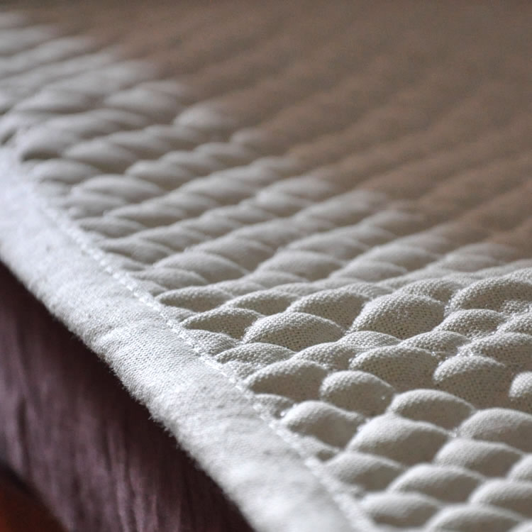ぽこぽこキルトで肌さわりが良く独特のシャリシャリ感がたまらない上質なパッドシーツ。