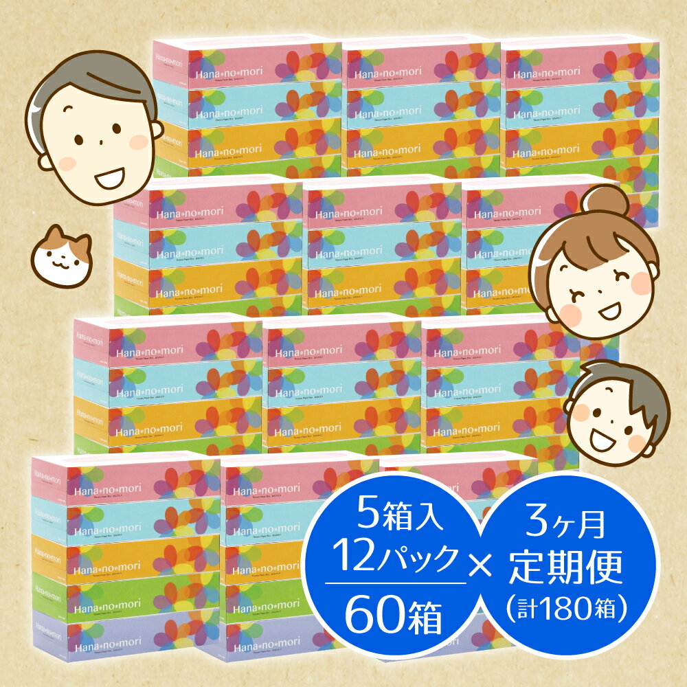 商品について 返礼品名 【定期便/3ヶ月】はなのもりBOXティッシュペーパー 60箱(5箱×12セット) 内容量 ・BOXティッシュ160組320枚 5箱×12パック(合計60箱)を1ヶ月毎3回連続お届け(合計180箱) サイズ:幅243×奥行115×高さ268mm 材質:パルプ100%使用 発送について 【3ヶ月定期便】 ※定期便の期日指定はお受けできません。